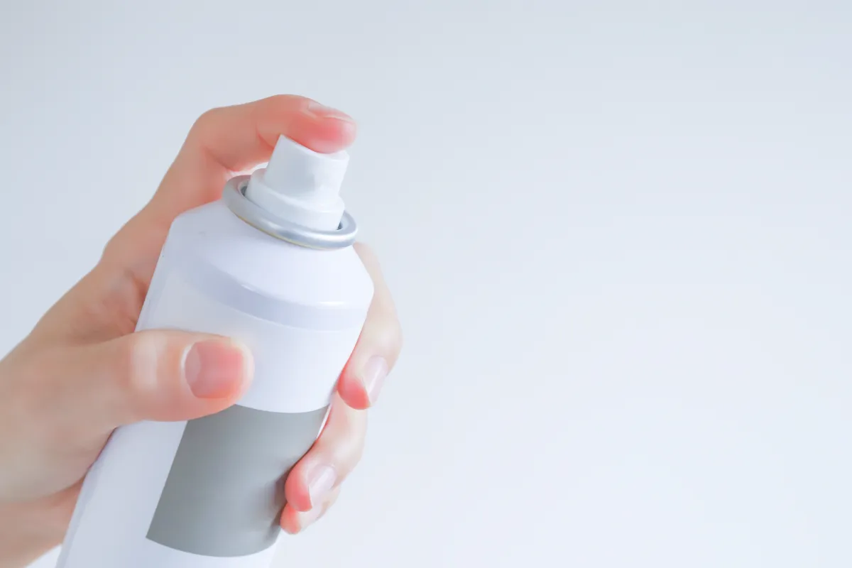 容器の中にガスと液剤が入っており、ボタンを押すとガスの圧力により中身が噴出するスプレーのことを指します。